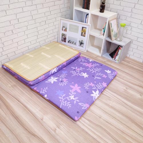 SUMMER台灣製造 高密度冬夏兩用日式蓆邊小紫大青竹蓆三折疊床墊 宿舍床墊