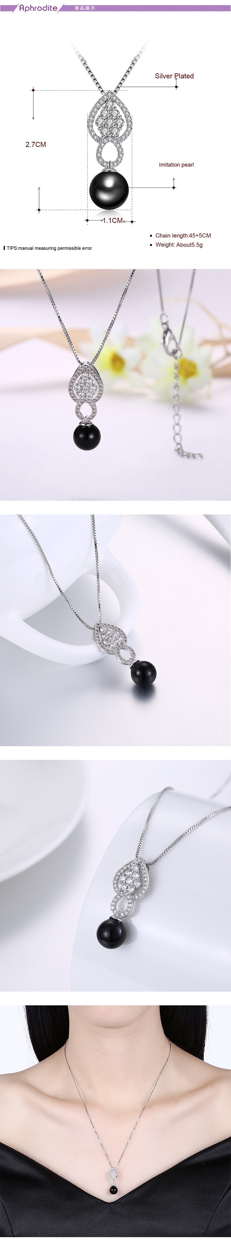【Aphrodite 愛芙晶鑽】璀璨花鑽黑珍珠造型項鍊 白金色