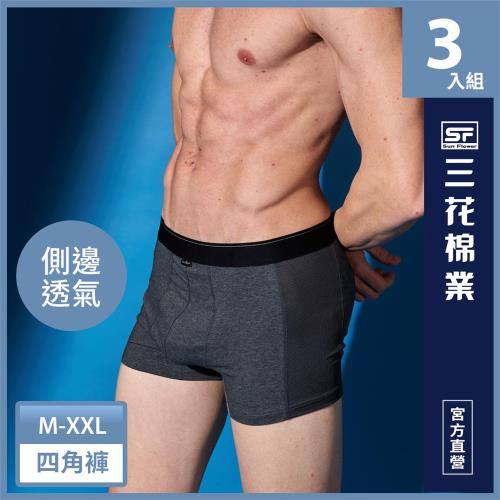 【Sun Flower三花】三花彈性貼身運動內褲.平口褲.男四角褲.男內褲(3件組)