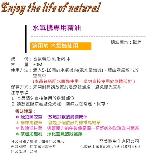 本產品設計新穎,將香氛文化與現代科技相結合,利用超聲波超頻震動的原理使水和植物香薰精油霧化成3μm(3微米)的超微粒子,同時產生大量更易被人體吸入的負離子,充分發揮精油自然芳香療法的功效,助您在壓力重重的工作生活中得到放鬆,達到健康安神,美膚保濕的功效。