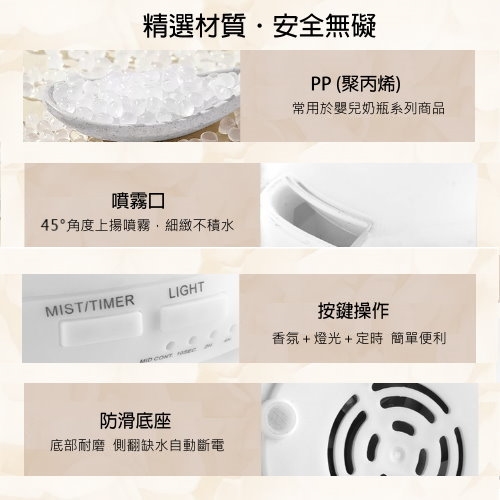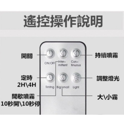 注: 剛加水時水量較多噴霧會相對較小,隨著水量減少噴霧會逐漸增大。