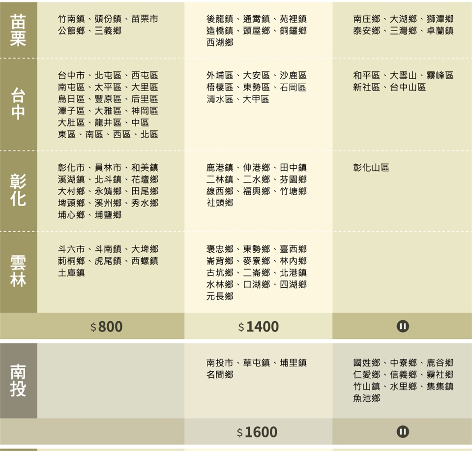 部分未載名偏遠鄉鎮區域本公司保有出貨與否權利!