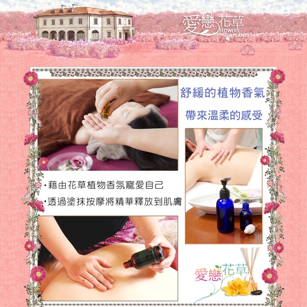 取適量加入按摩油或保養品中,以指腹由中間向外按摩幫助精油的吸收。亦可泡澡使用。