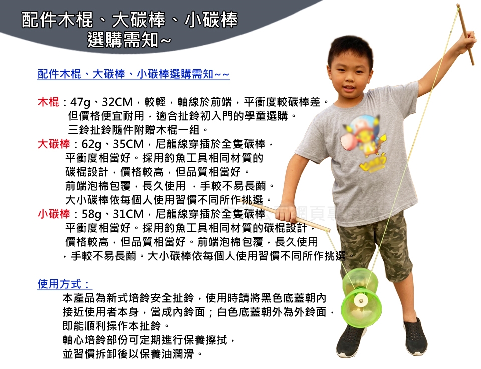 配件:木棍+扯鈴專用繩(具有水線特質與棉線拉力)