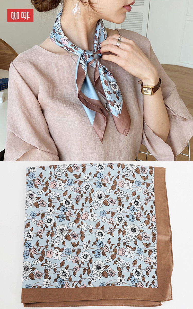seoul show首爾秀 花卉方領巾仿真蠶絲緞面頭巾雪紡絲巾