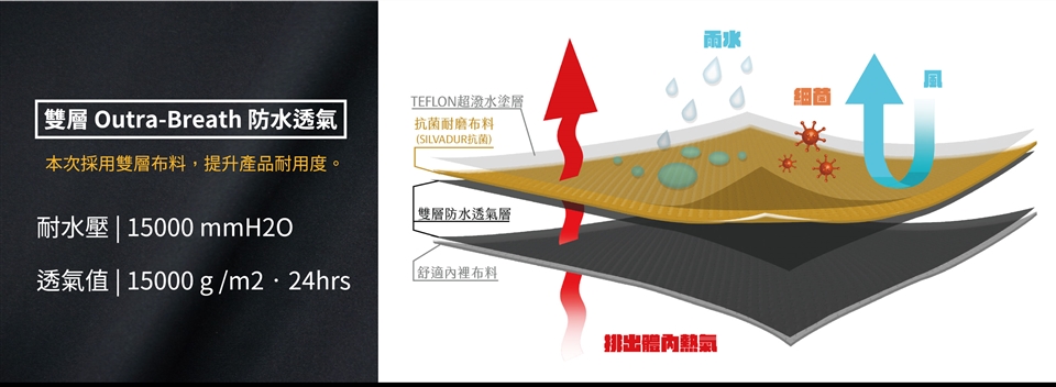 防水層分解為不可逆,無法修補,僅能當風衣穿著。