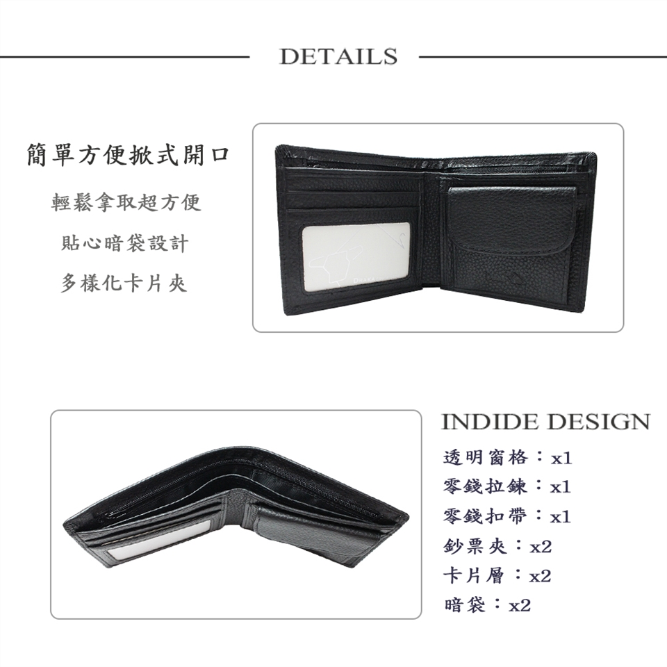 DRAKA 達卡 - 袋著走系列-真皮可掀式短夾