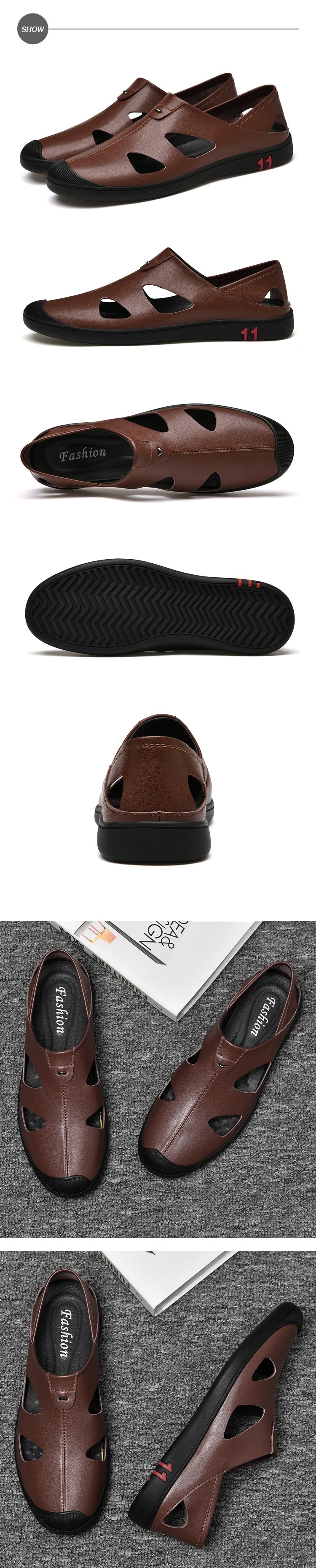 【ANSEL】真皮休閒鞋縷空休閒鞋/真皮兩穿法縷空透氣舒適休閒鞋-男鞋 棕