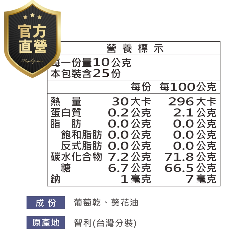 品 名| 特大葡萄乾(無籽250g)(純素)