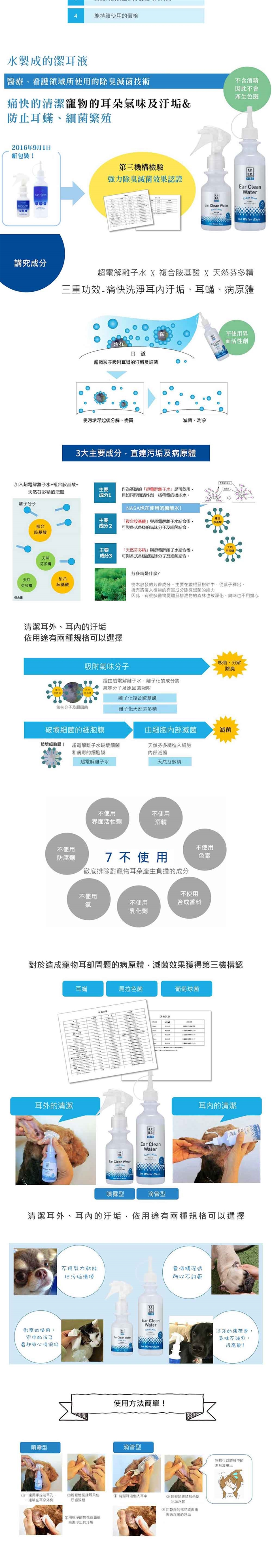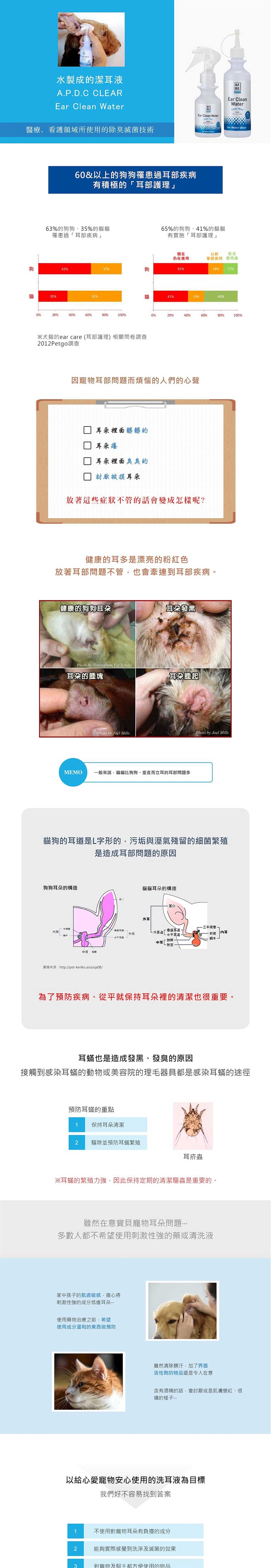 為預防感染症,棉花及紙巾請擦式完單邊的耳朵就更換。 使用棉花棒時,用力擦拭的話會造成耳朵的皮膚受傷,請特別小心。 對於討厭噴灑的狗狗,可將棉花吸飽液體,然後流入耳中。