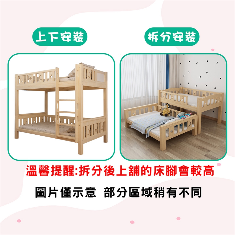 ♦可拆分成兩張床使用:上下鋪未來還可以拆成兩張單人床,給小朋友一路睡到大。
