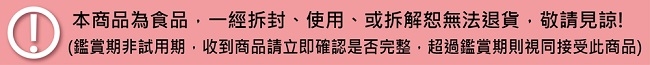 ※ 本商品為食品,一經拆封、使用、或拆解恕無法退貨,敬請見諒。