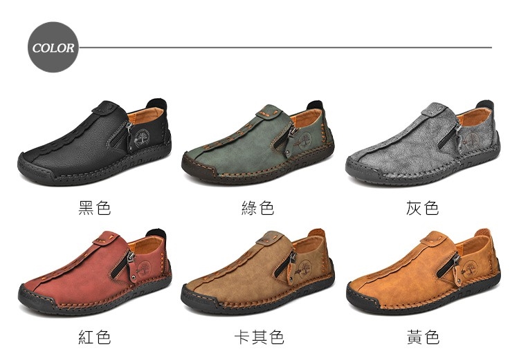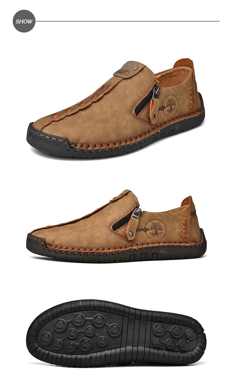 【Kiron】平底樂福鞋休閒樂福鞋/復古縫線擦色造型舒適休閒樂福鞋-男鞋    卡其