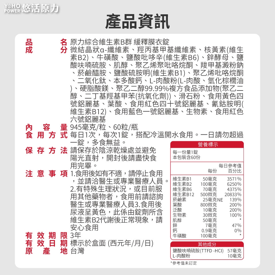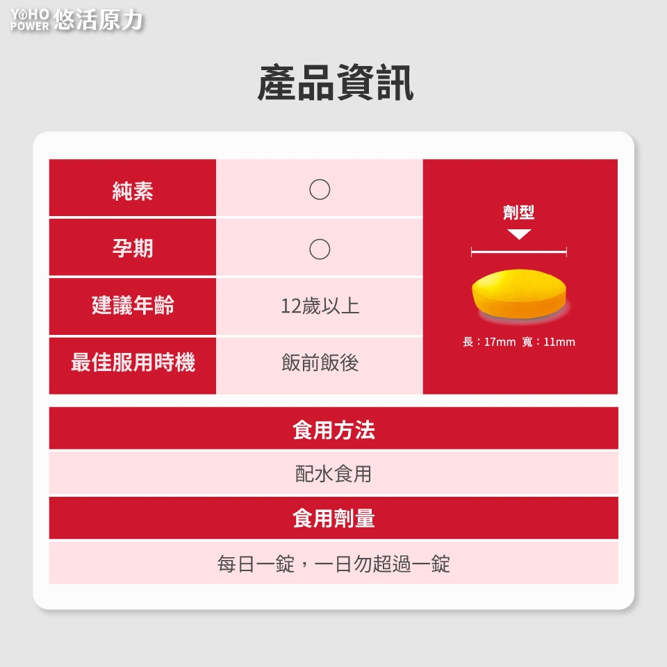 3.食用後尿液呈黃色,此係由錠劑所含維生素B2代謝後正常現象,請安心食用。