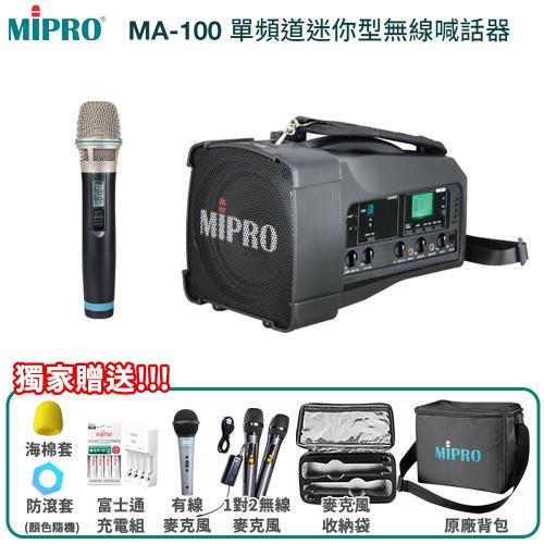 MIPRO MA-100 新型藍芽版 UHF單頻道肩掛式迷你無線喊話器(1手握麥克風)