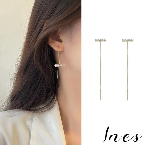 【INES】韓國設計925銀針復古珍珠長流蘇造型耳環