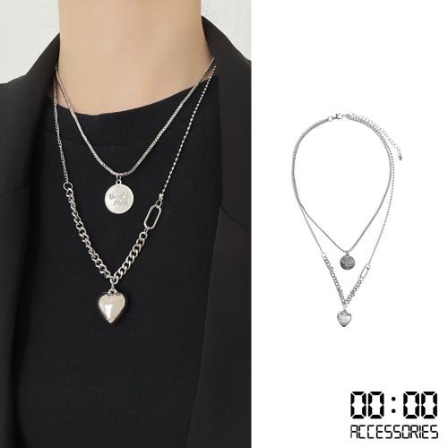 【00:00】韓國設計潮流愛心多層次小圓牌造型項鍊