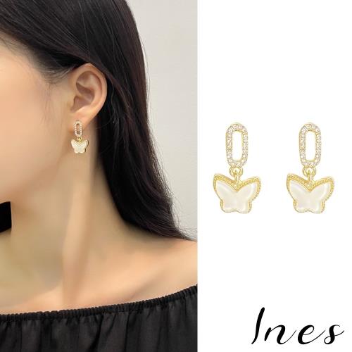 【INES】韓國設計925銀針水鑽O圈蝴蝶造型耳環