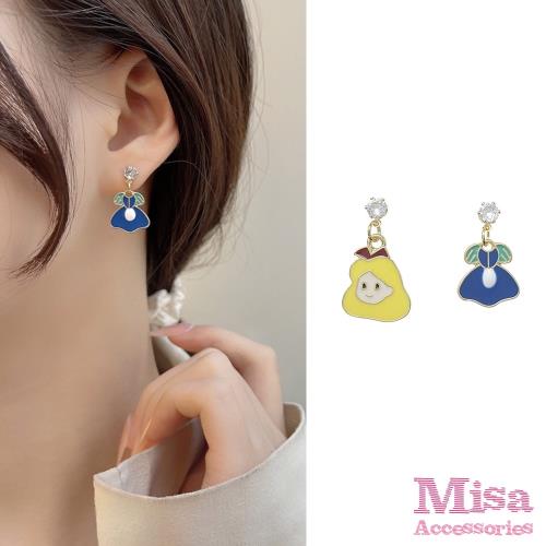 【MISA】韓國設計925銀針可愛滴釉公主造型不對稱耳環