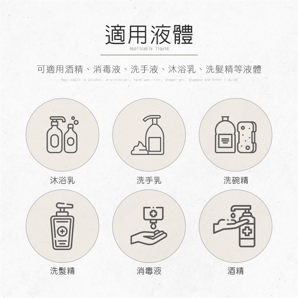 5. 精準定量: 有低中高 三個定量霧狀出液,充分濕潤雙手。