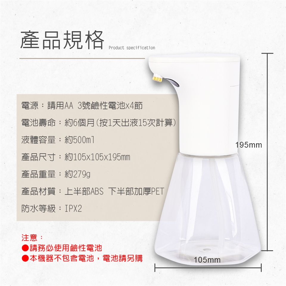 6. 紅外線感應快速噴出霧狀,免接觸免安裝。
