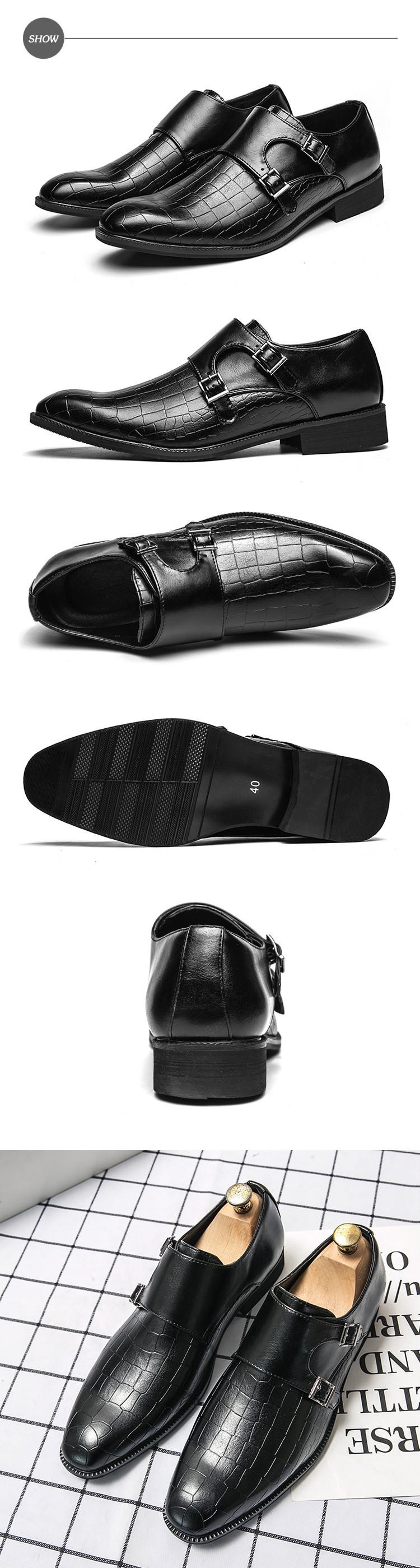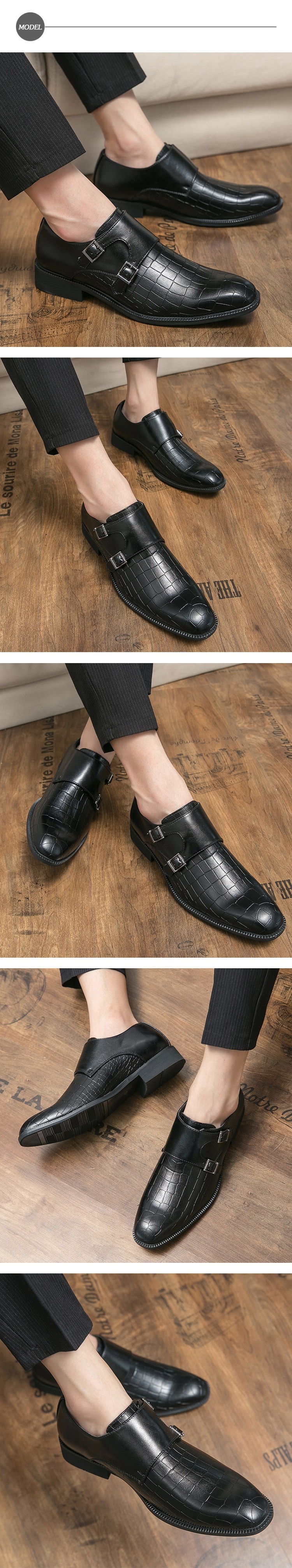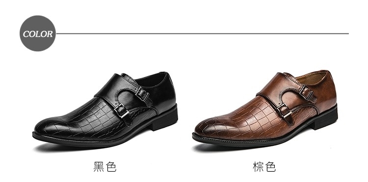 【Kiron】紳士皮鞋粗跟皮鞋/復古雙釦帶時尚壓紋經典紳士皮鞋-男鞋 黑