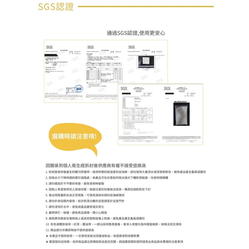 4. 因無人希望使用他人踩過地墊,故請注意拆封後無法退貨,購買前請斟酌在下訂