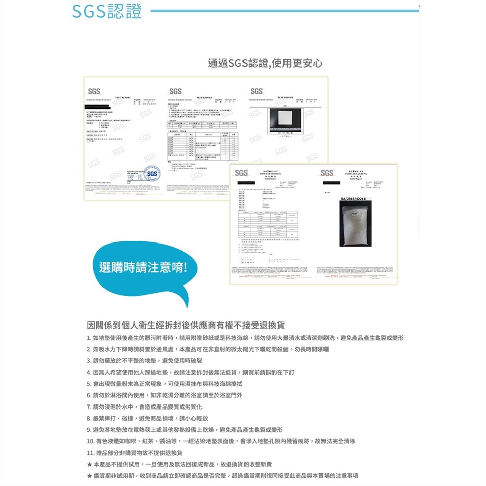 4. 因無人希望使用他人踩過地墊,故請注意拆封後無法退貨,購買前請斟酌在下訂