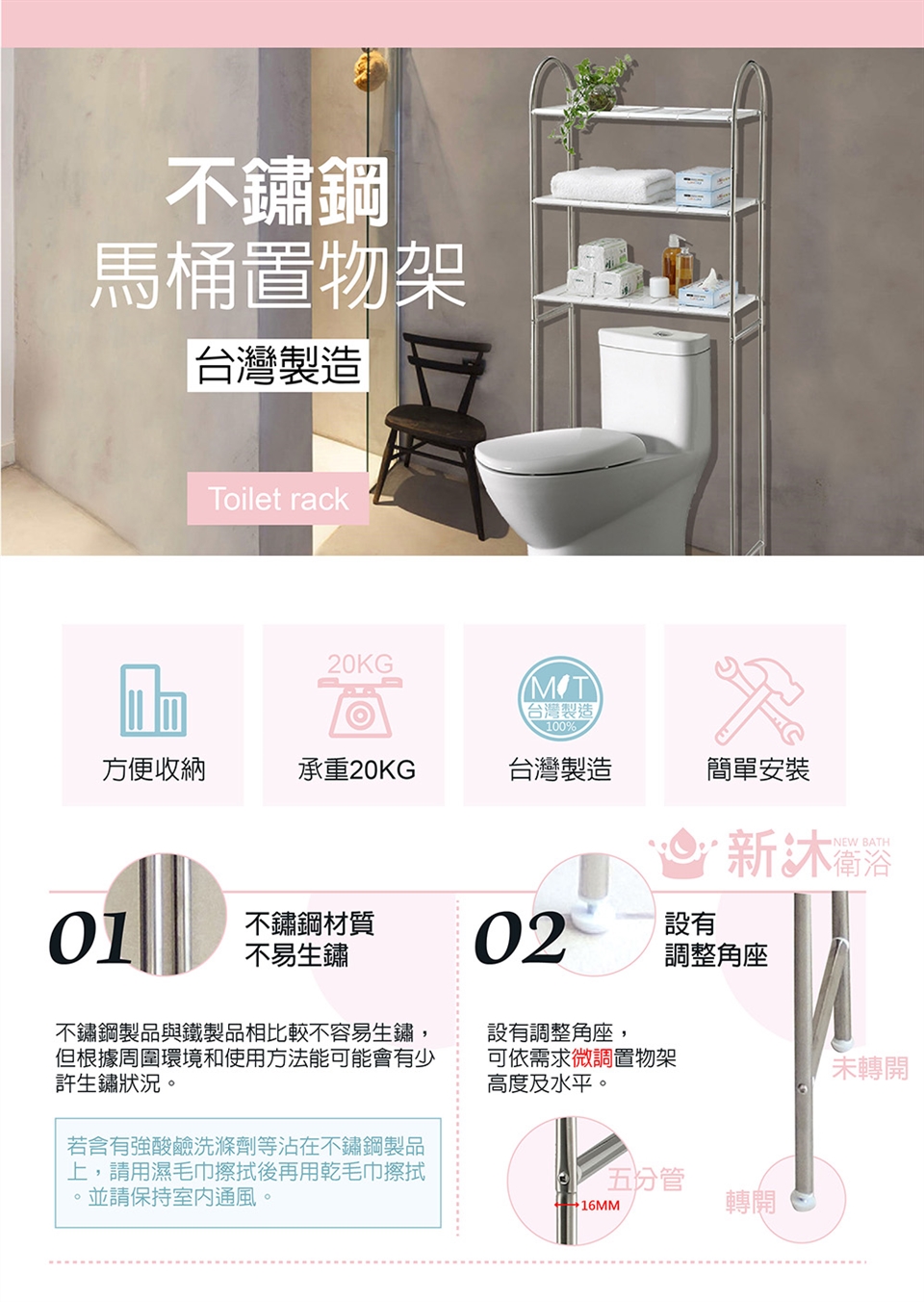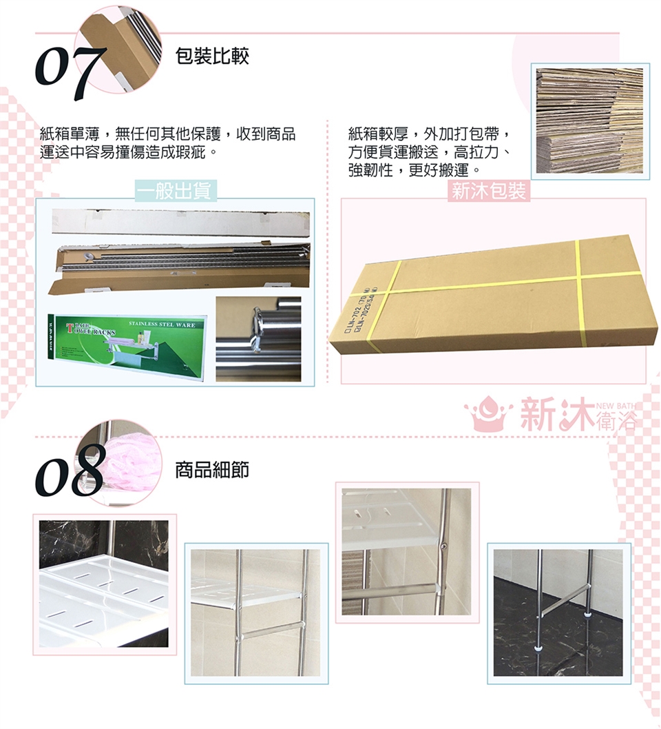 底部設計為配合各種不同馬桶,所以是沒有橫桿的,組裝後未黏貼於牆面會搖晃。
