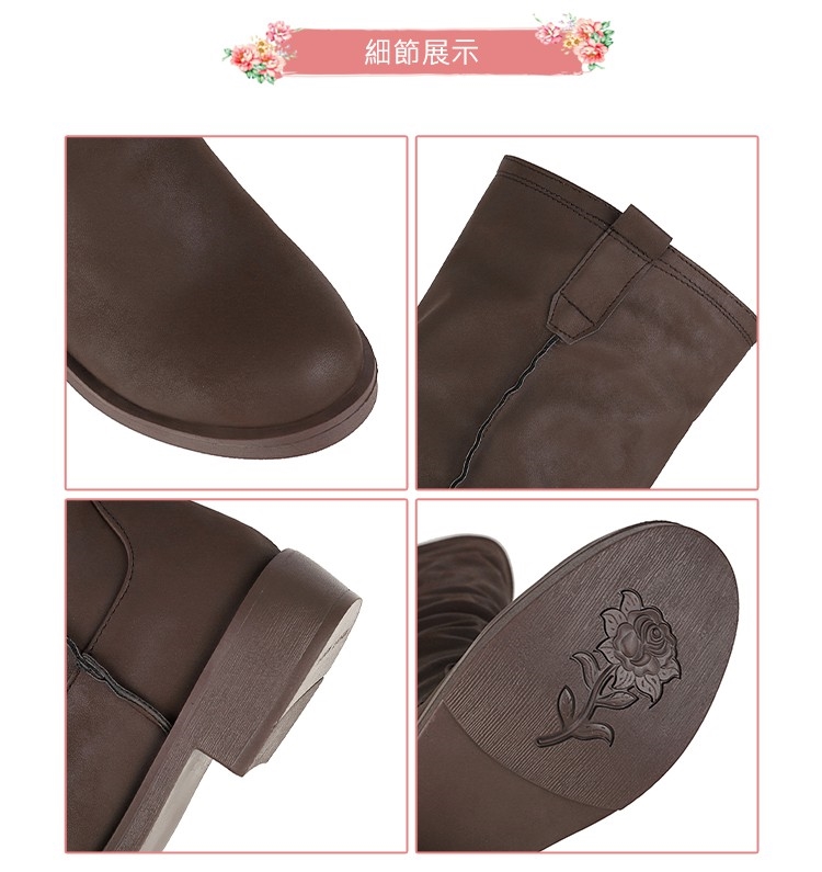 【Kissxxx】粗跟中筒靴低跟中筒靴/經典純色素面騎士風低跟中筒靴 棕