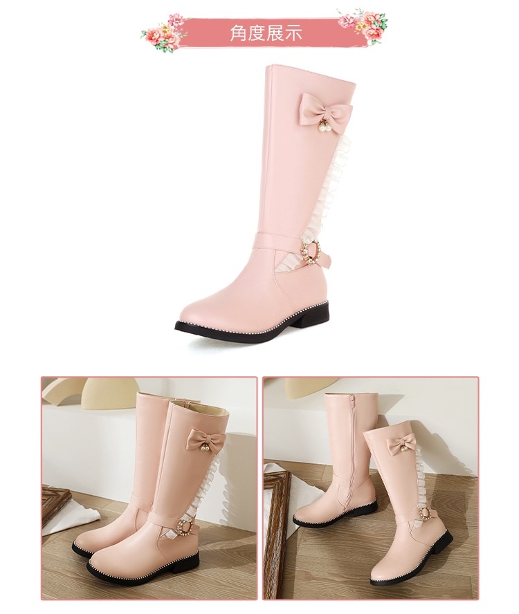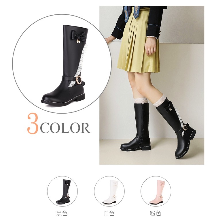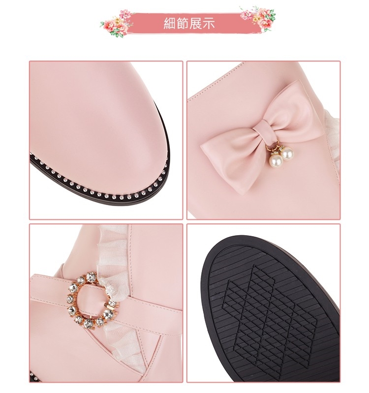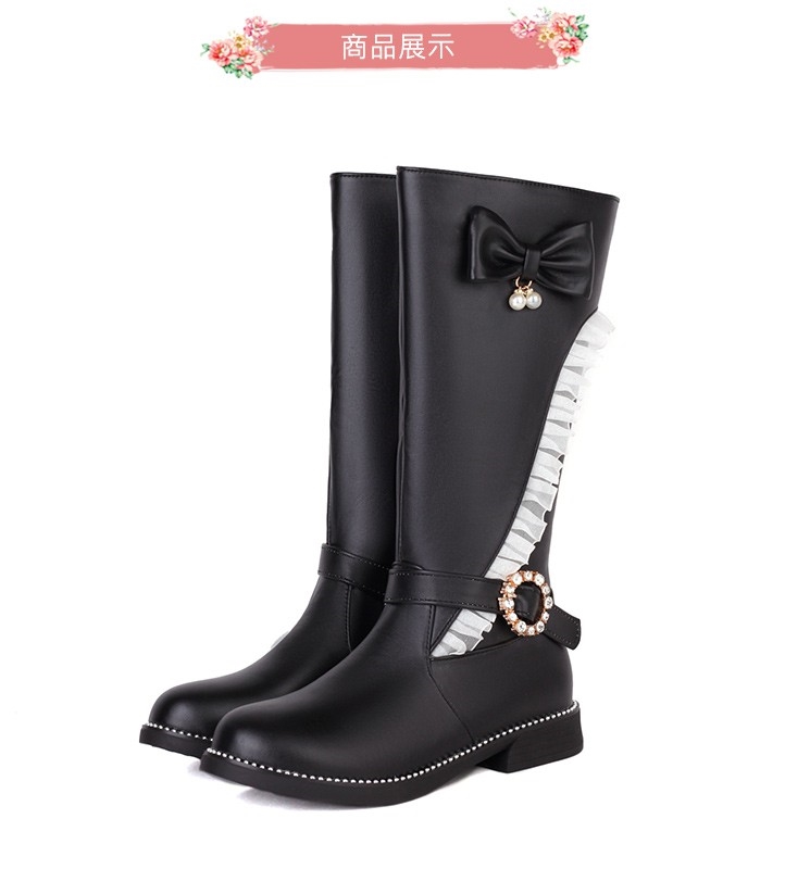 【Kissxxx】蝴蝶結中筒靴低跟中筒靴/唯美蕾絲蝴蝶結搭釦造型低跟中筒靴 黑