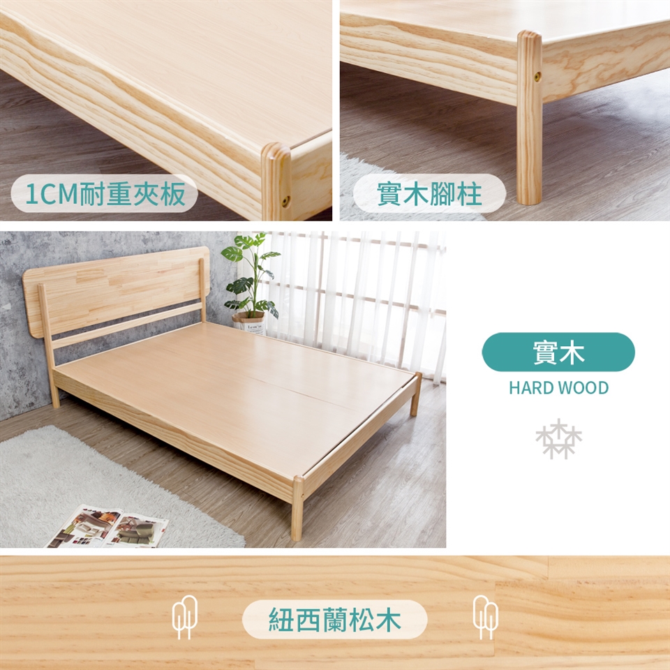 1CM耐重夾板床板,搭配優質實木腳柱,不易變形,呵護您的睡眠品質!