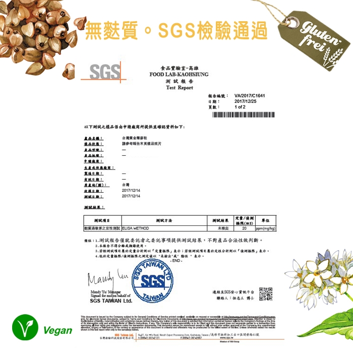 過敏源資訊:本產品含有苦蕎麥(無麩質),對種子/麥類易食物過敏者請留意,食用前建議詳細確認。