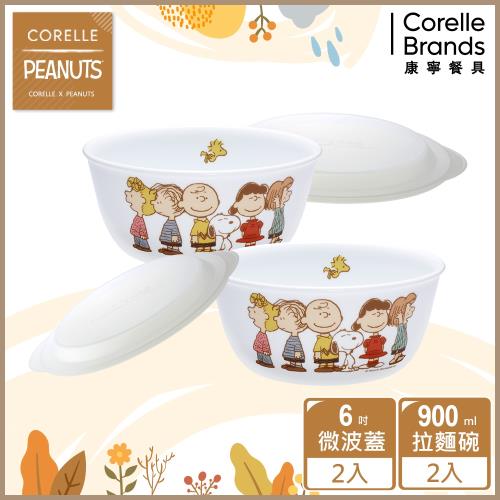 【美國康寧】CORELLE SNOOPY FRIENDS 消夜食刻4件式麵碗組-D01