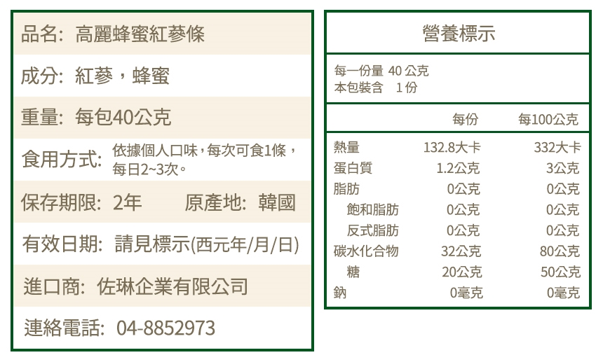 依據個人口味,每次可食1~2條,每日2~3次。 (15歲以下份量請減半)。