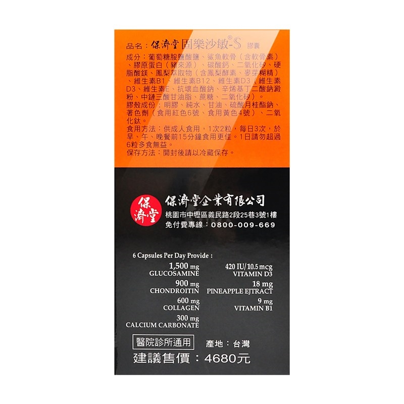 *中文品名:保濟堂 固樂沙敏-S膠囊