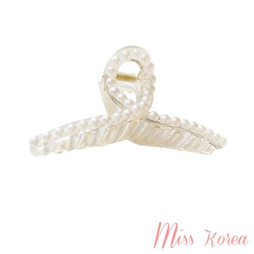 【MISS KOREA】韓國設計溫柔氣質透明珍珠抓夾 鯊魚夾 髮夾