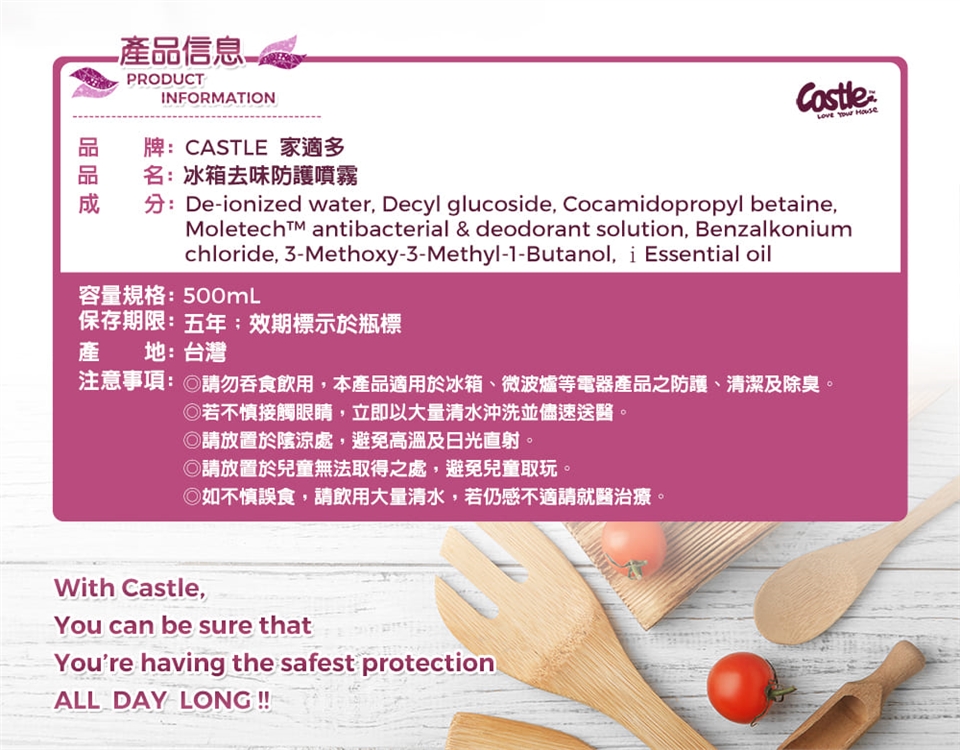 #Castle家適多 #冰箱去味防護噴霧 #冰箱除臭 #冰箱清潔 #分解異味分子 #長效淨味 #中性配方 #溫和清潔 #無化學香精 #天然植物來源 #居家防護 #冷藏室清潔 #冷凍庫除臭 #蔬果盒除味 #去味噴霧 #居家清新 #環保溫和 #台灣製造 #CastleClean #家適多清潔