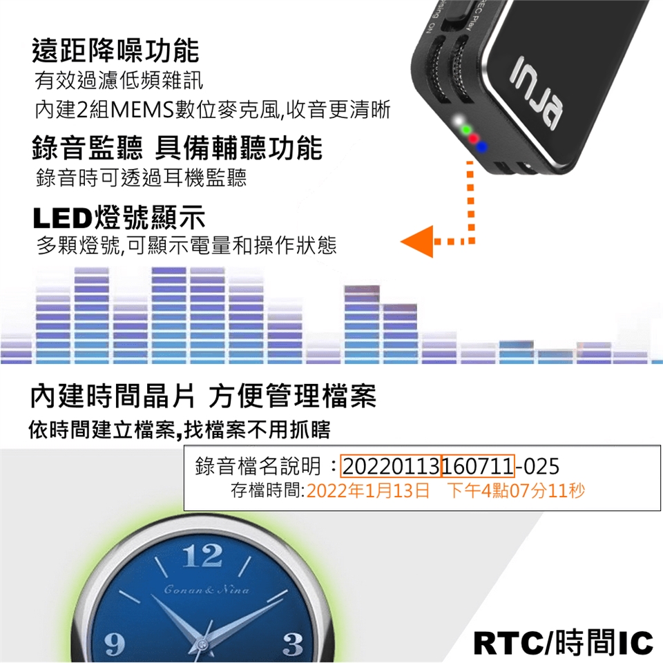 ●全方位多功能,內建大容量64G空間,錄音筆、MP3、隨插即用隨身碟,內建Micro USB 2.0插槽,64G可存錄音檔260小時