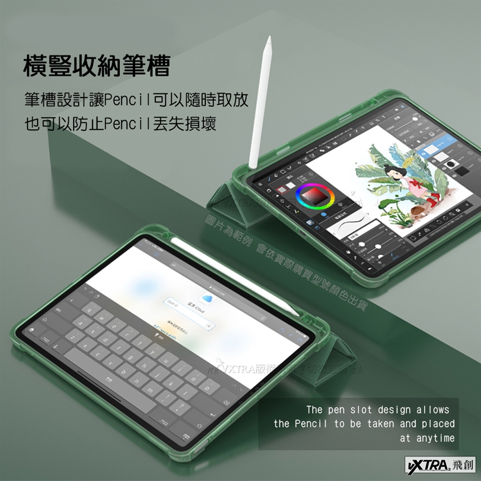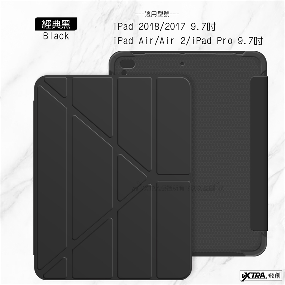 VXTRA氣囊防摔 iPad 2018/iPad Air/Air 2/Pro 9.7吋 共用 Y折三角立架皮套 內置筆槽(經典黑)