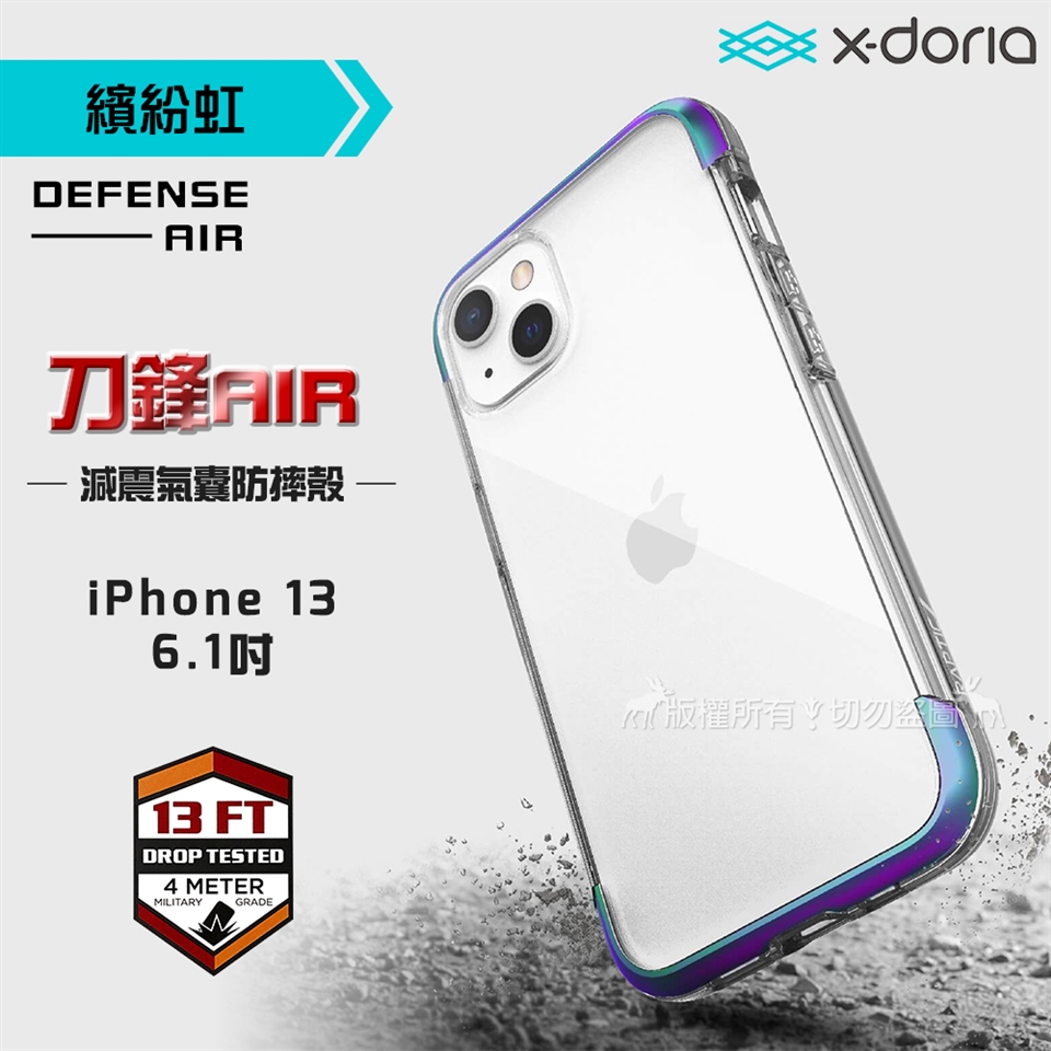 DEFENSE 刀鋒AIR iPhone 13 6.1吋 金屬防撞邊框 減震氣囊防摔殼(繽紛虹)