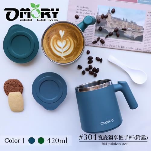 【OMORY】#304不鏽鋼寬底獨享把手杯420ml-任選