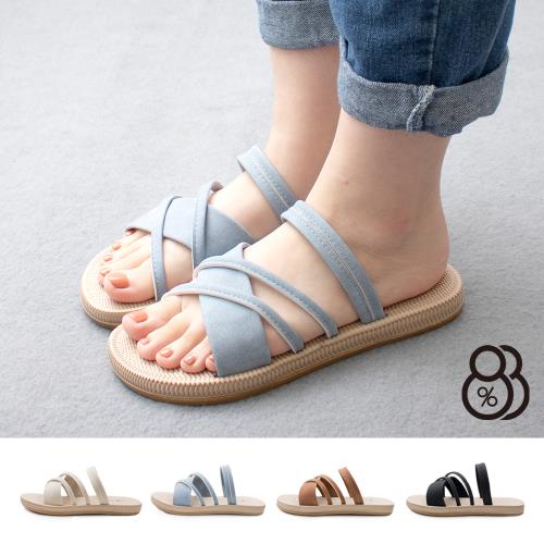 【88%】2cm拖鞋 休閒百搭交叉 平底圓頭兩穿涼拖鞋