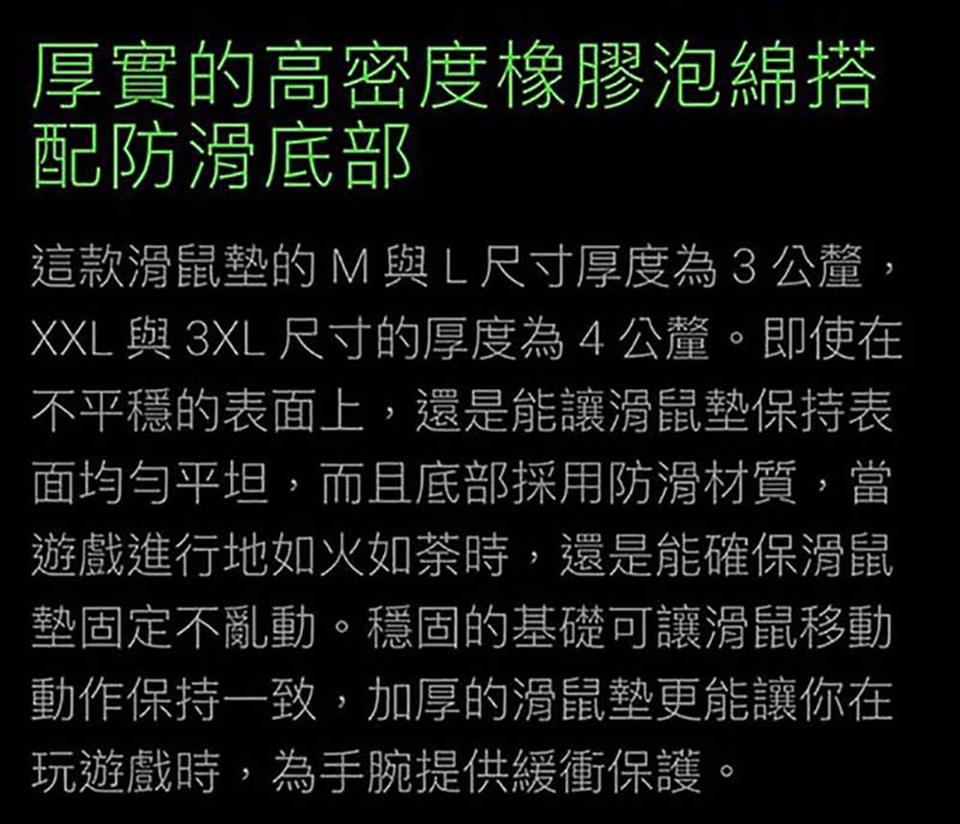 💥全新的編織紋理表面摩擦力較小,可讓你快速移動滑鼠,同時具有高製動力,確保精確的滑鼠控制。不但如此,為了符合你的設置,現在還提供不同尺寸供你選擇。 如果你打算在遊戲中大展身手,Razer Gigantus V2 就是你的最佳搭檔。這款軟式遊戲滑鼠墊表面採用超細緻的編織紋理布料,專為讓你在遊戲中流暢掃掠滑鼠,並擁有像素等級的精確瞄準能力而設計。