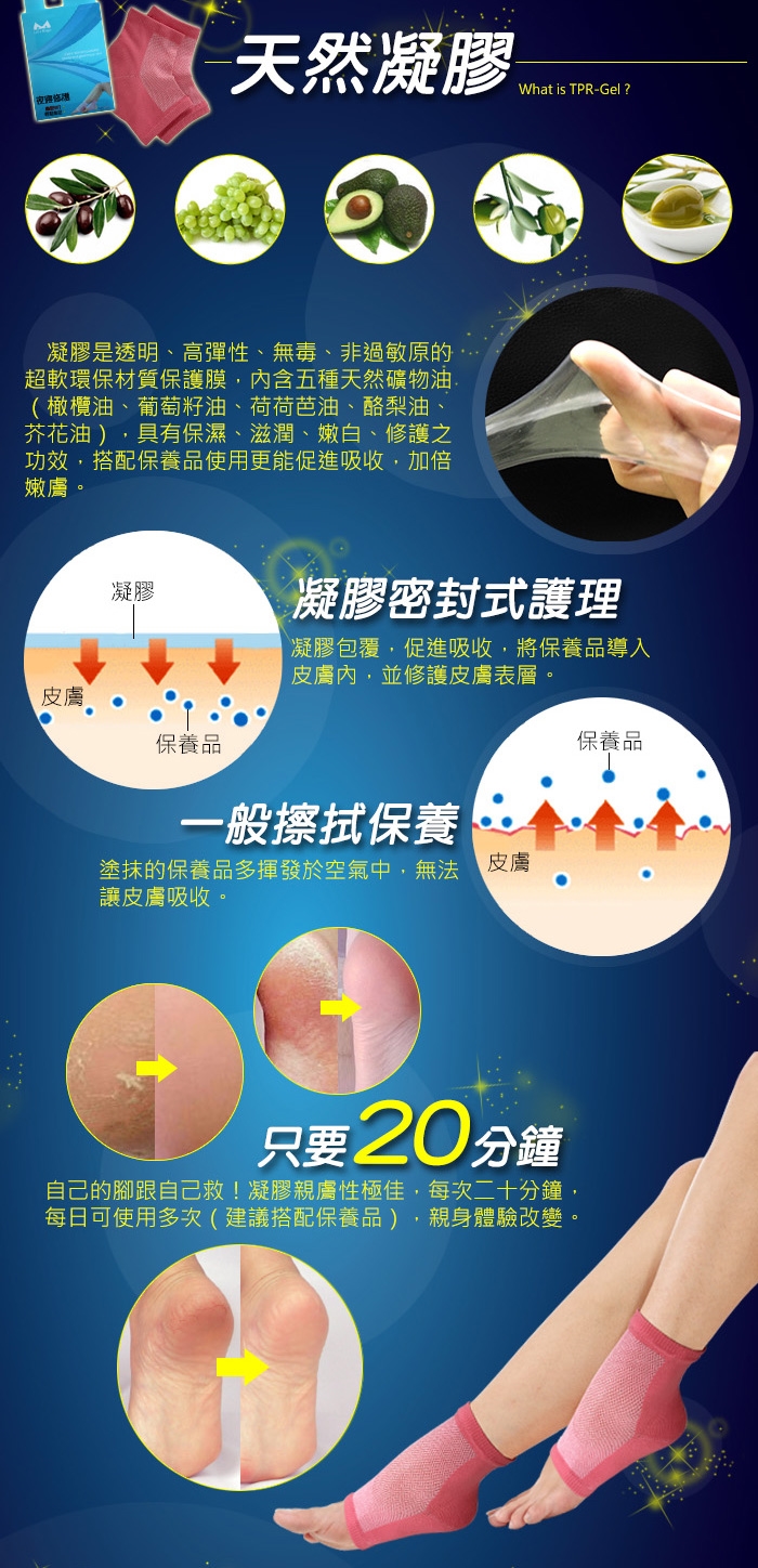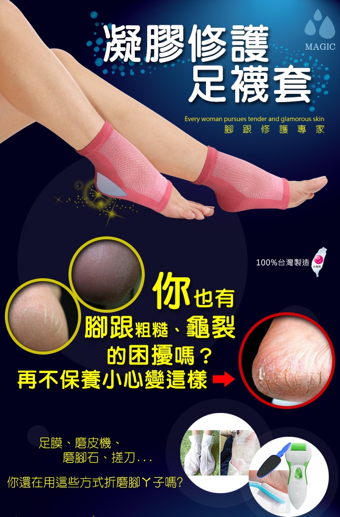 懶人保養法只要穿上隔天起床,讓您擁有鵝蛋般光滑#足跟,再也不怕穿鞋磨擦產生乾燥足.龜裂足,其實保養足跟很簡單,美麗的妳–快來一起使用保濕凝膠足膜–套上就擁有美足+美肌刻。