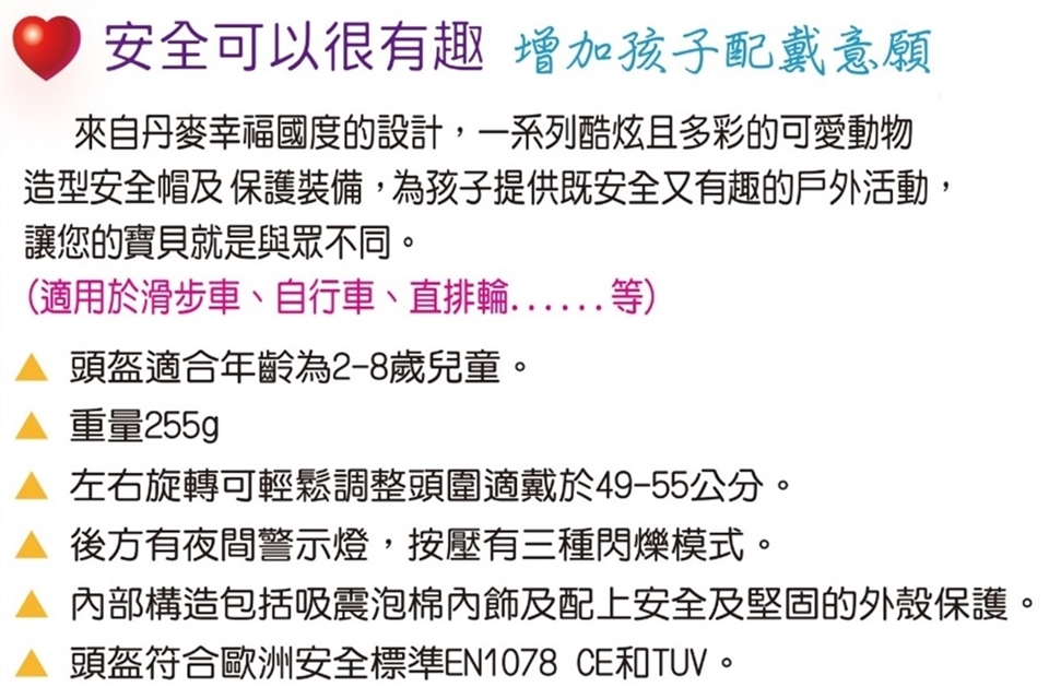 (1)適合年齡:1歲~10歲(實際依頭圍長度而有所不同)