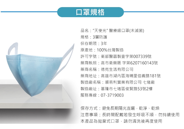 本產品為拋棄式口罩,請勿清洗後再度使用。