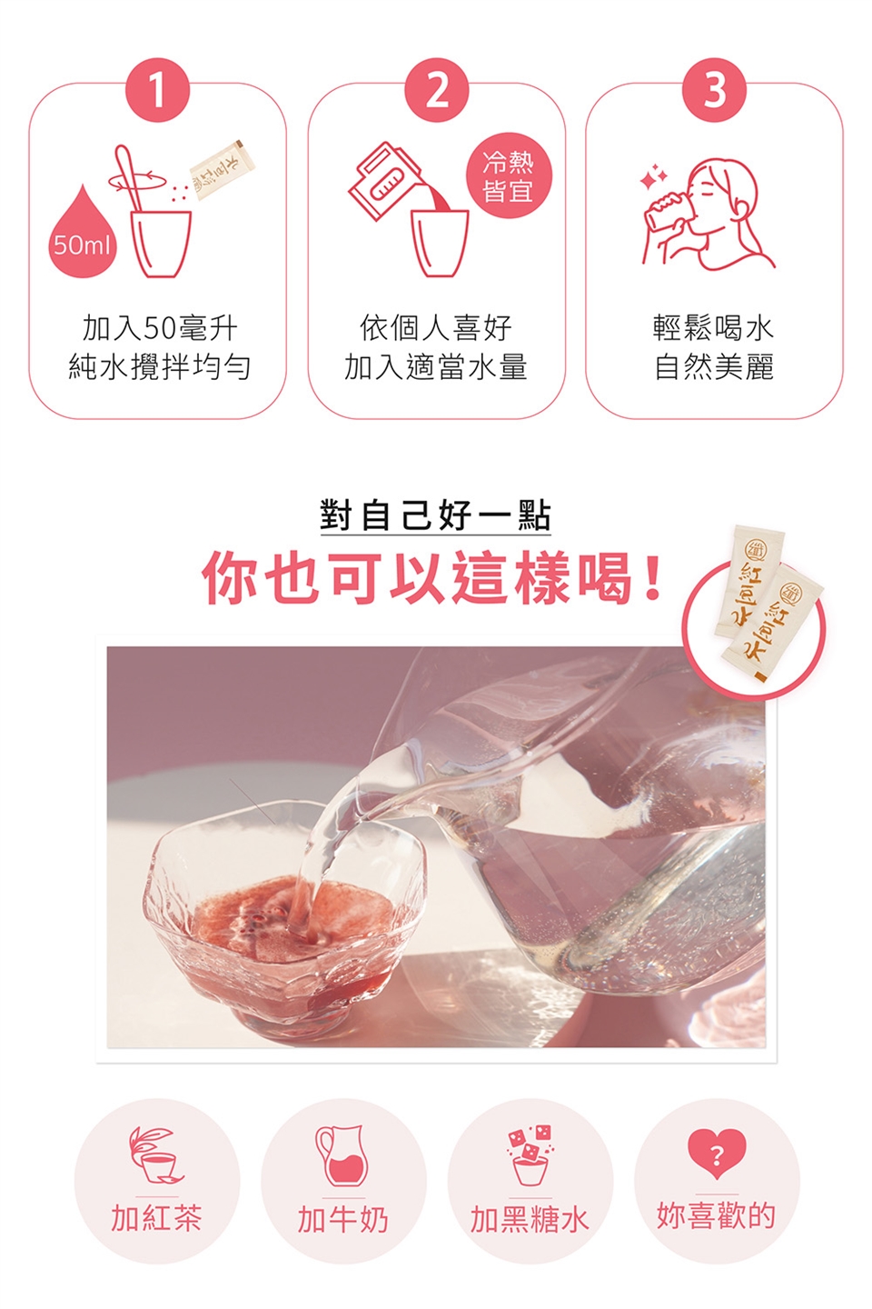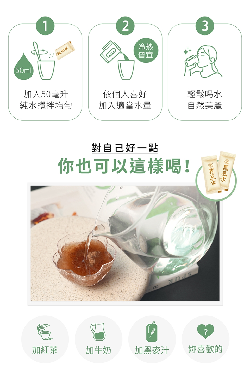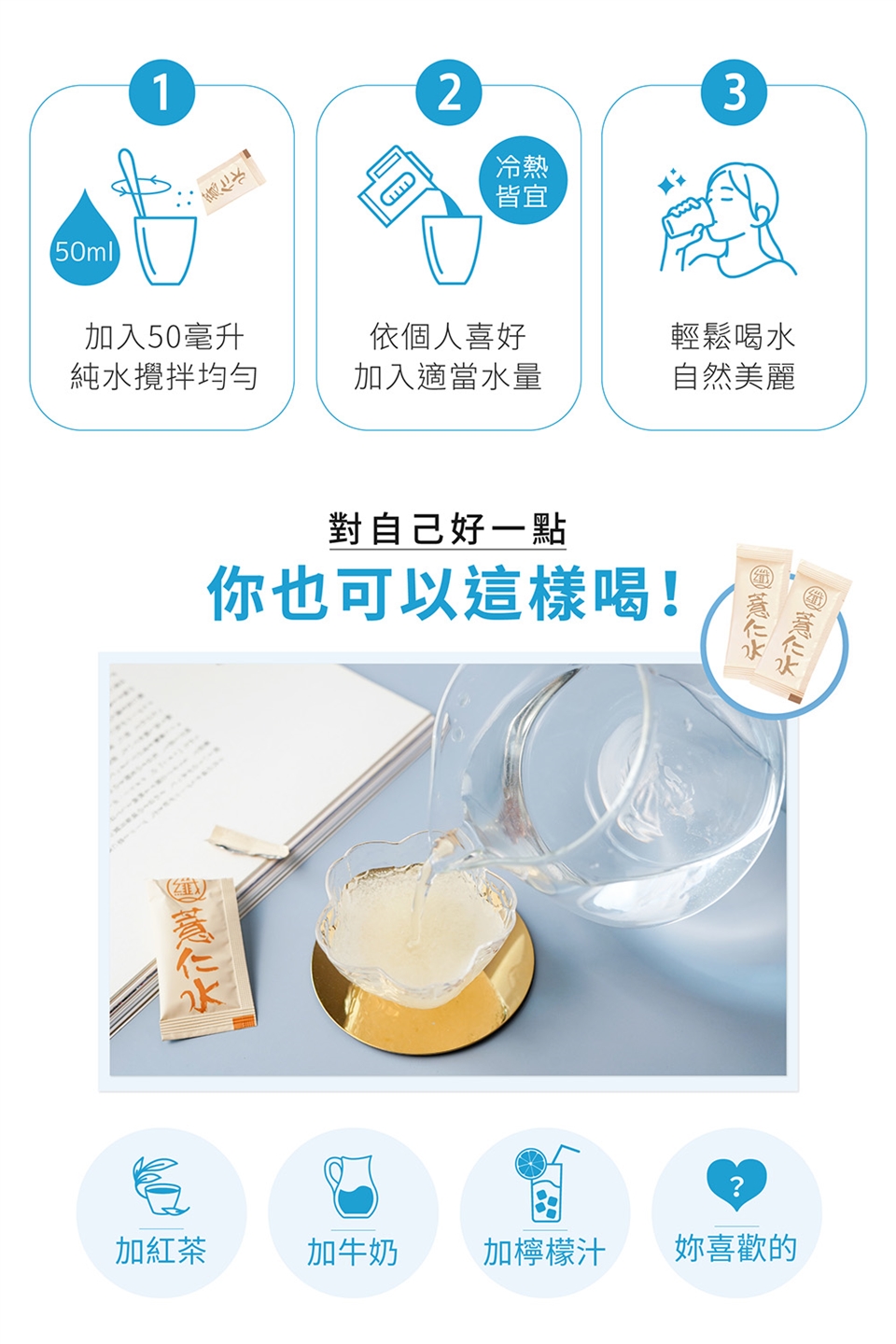 【飲用方法】一小包沖泡300~500cc水量(或加入喜好飲品、果汁中皆可)
