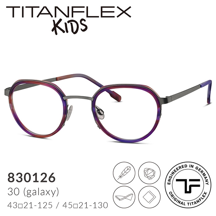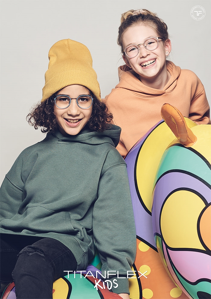 【TITANFLEX Kids】眼鏡加入孩子們喜愛的元素與巧妙設計,色彩繽紛、富有想像力的鏡框在日常生活中提供了寶貴的幫助,即使戴著眼鏡,在不受限制的遊樂場所仍然是安全的。