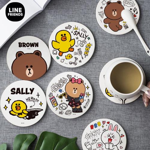 網狐家居-LINE FRIENDS 塗鴉風系列 珪藻土吸水杯墊 2入/組 [現貨] 熊大/莎莉/熊美/兔兔